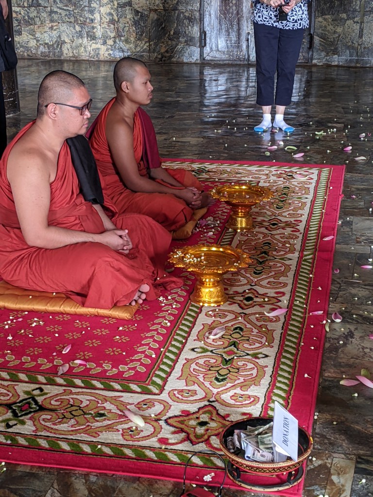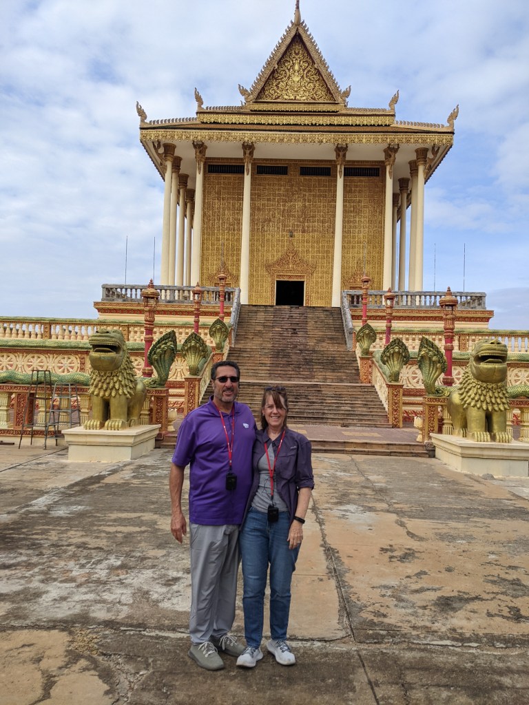 There are more than 5,000 Buddhist temples in Cambodia. Udon Temple is newer, built in 1996. Boys can begin the process to become a monk at 12 years old. Monks must follow 110 rules and cannot be touched. There were priests and nuns who lived at this temple. They have a retirement community there too. We were blessed to have two monks give us a blessing ceremony. They chanted and threw lotus petals to shower us with the blessing. We asked what words they used and our guide said that they prayed for longevity, strength and health. Amen to that!