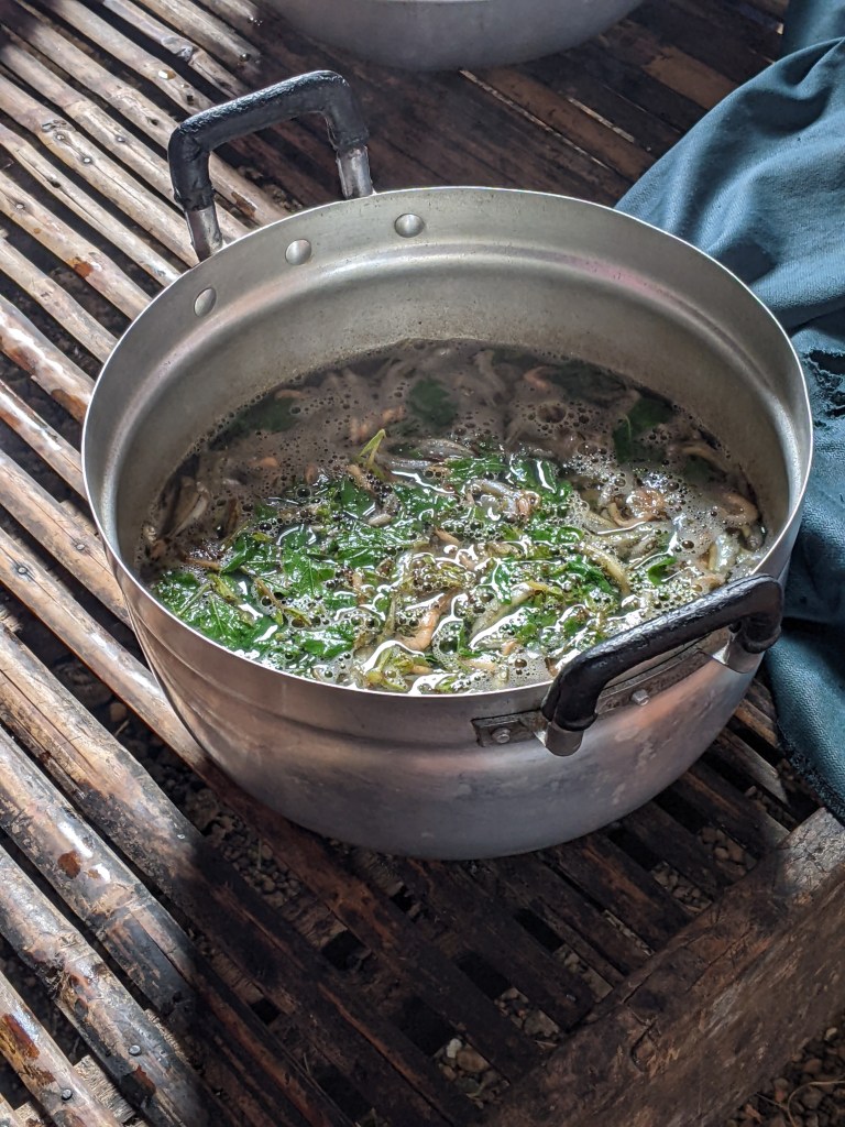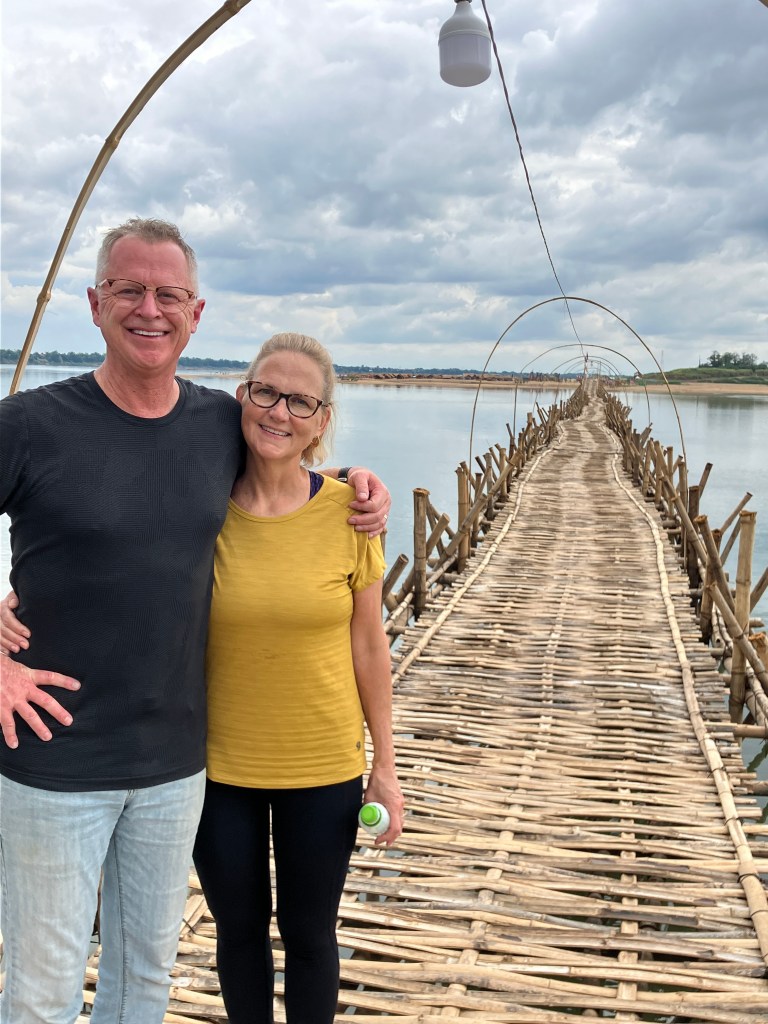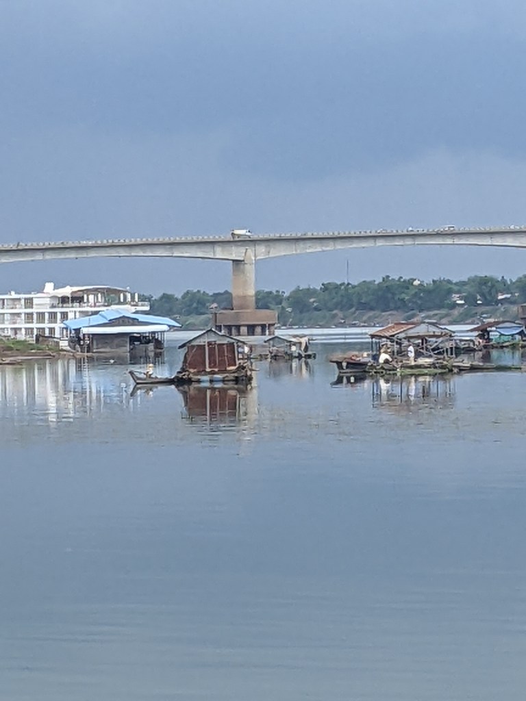 Close to where the ship docked was a bamboo bridge. We walked across the crunchy bridge to see the sandy beach on the island. Halfway back we were soaked with a little rain shower, but it ended before we reached land. The bamboo bridge is taken down during the rainy season and then put up again during the winter.