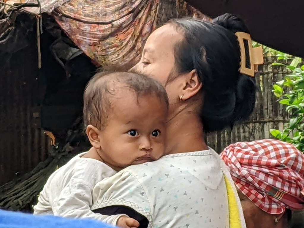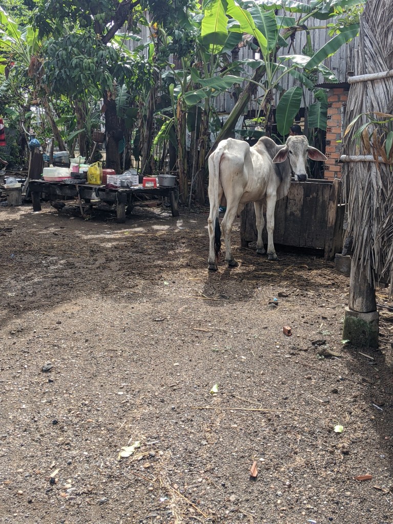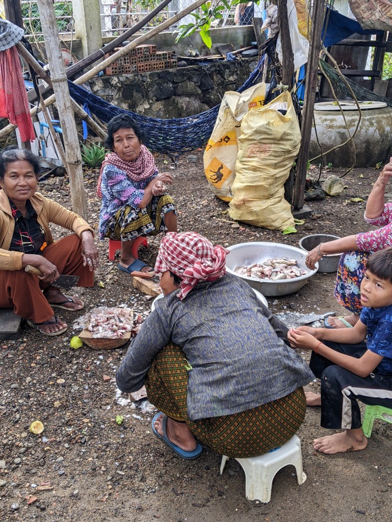 Just outside of Kampong Cham is a little impoverished village. We were able to walk all over the village and look into their homes. Some were cleaning fish and others were preparing sugar cane. Our guide showed us the types of fish sauce that they ferment. One woman shared her soup with us. The children were as fascinated with us as we were with them.