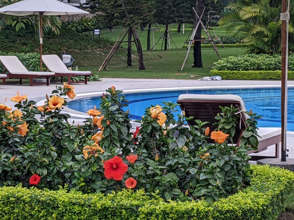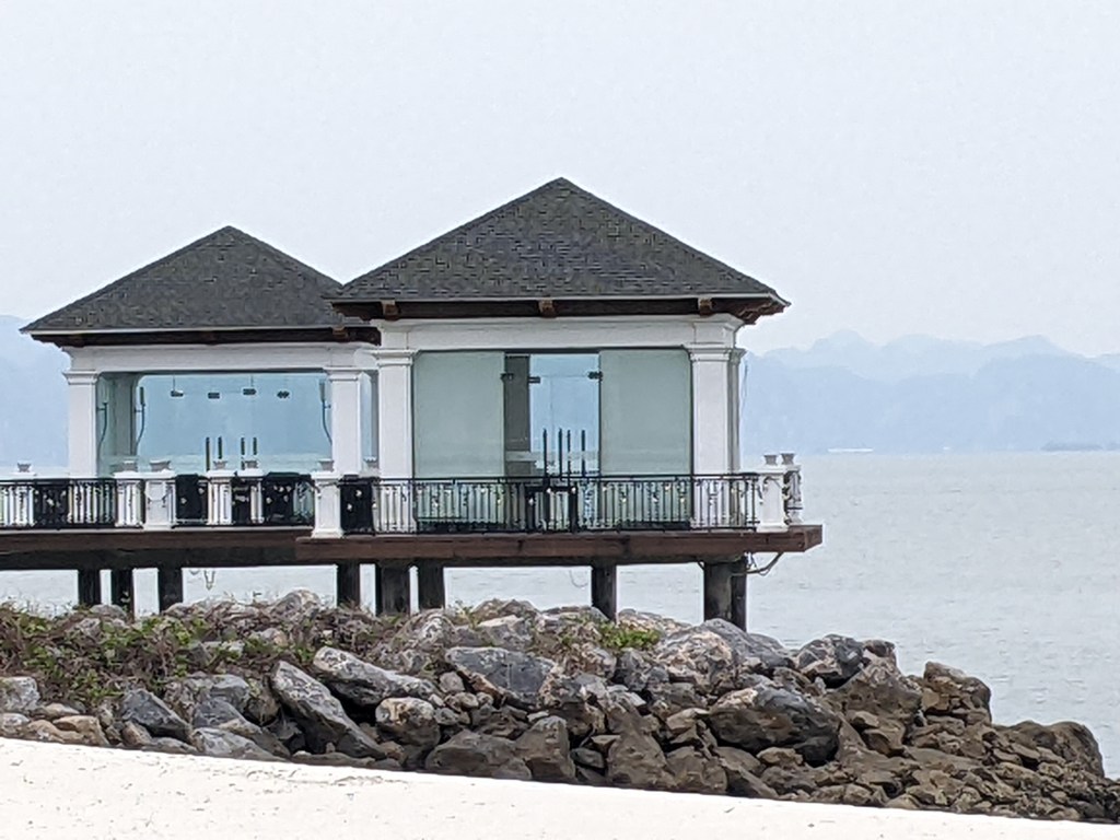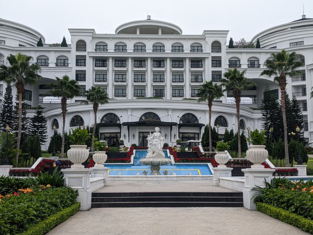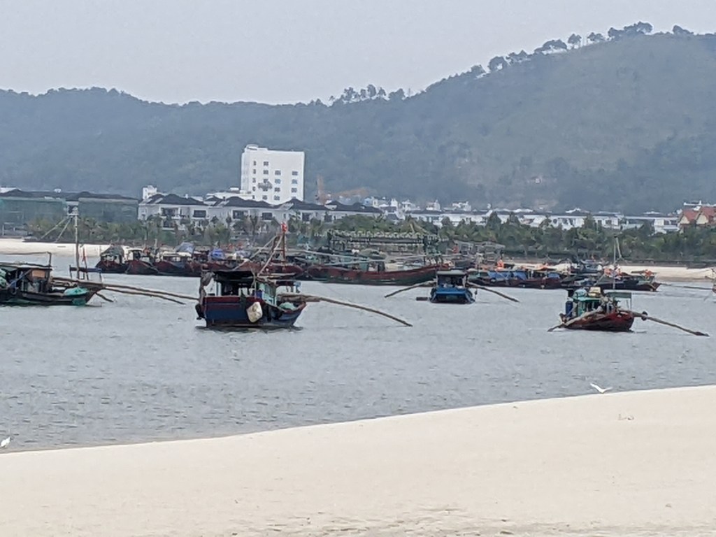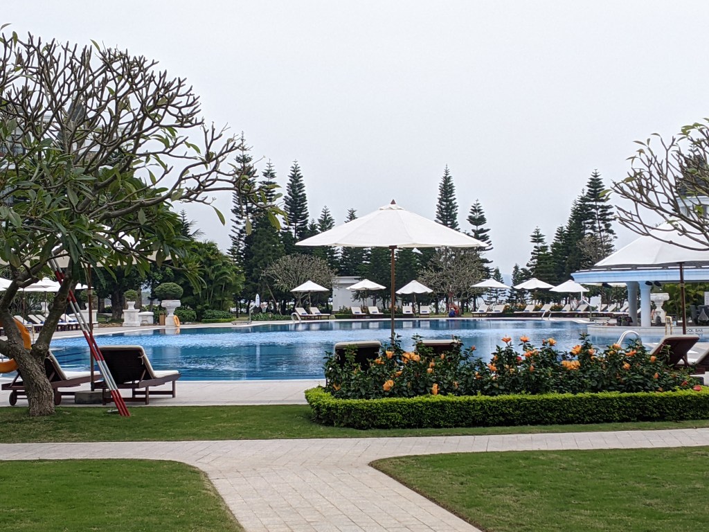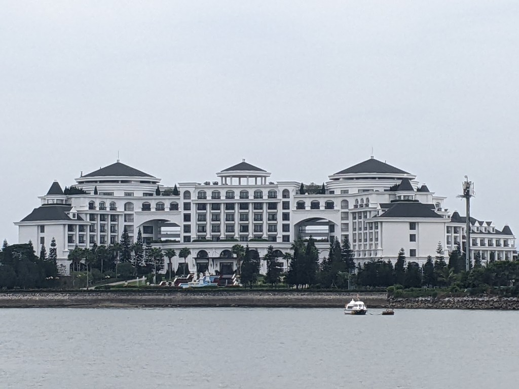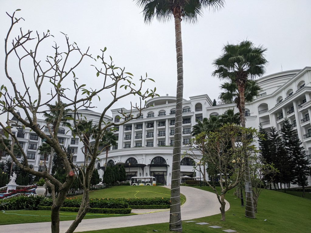 We slept in this morning and then had a walk around the hotel grounds. Gardeners were everywhere working on planting and trimming. This island was man made and they have boats to take guests to the hotel. They scan for face recognition to get on the boat and into the dining room. This would be a good spot to come and swim when it is warmer. We went out and felt the water from the South China Sea or the East Sea as the Vietnamese call it. That water felt warmer than the swimming pool.