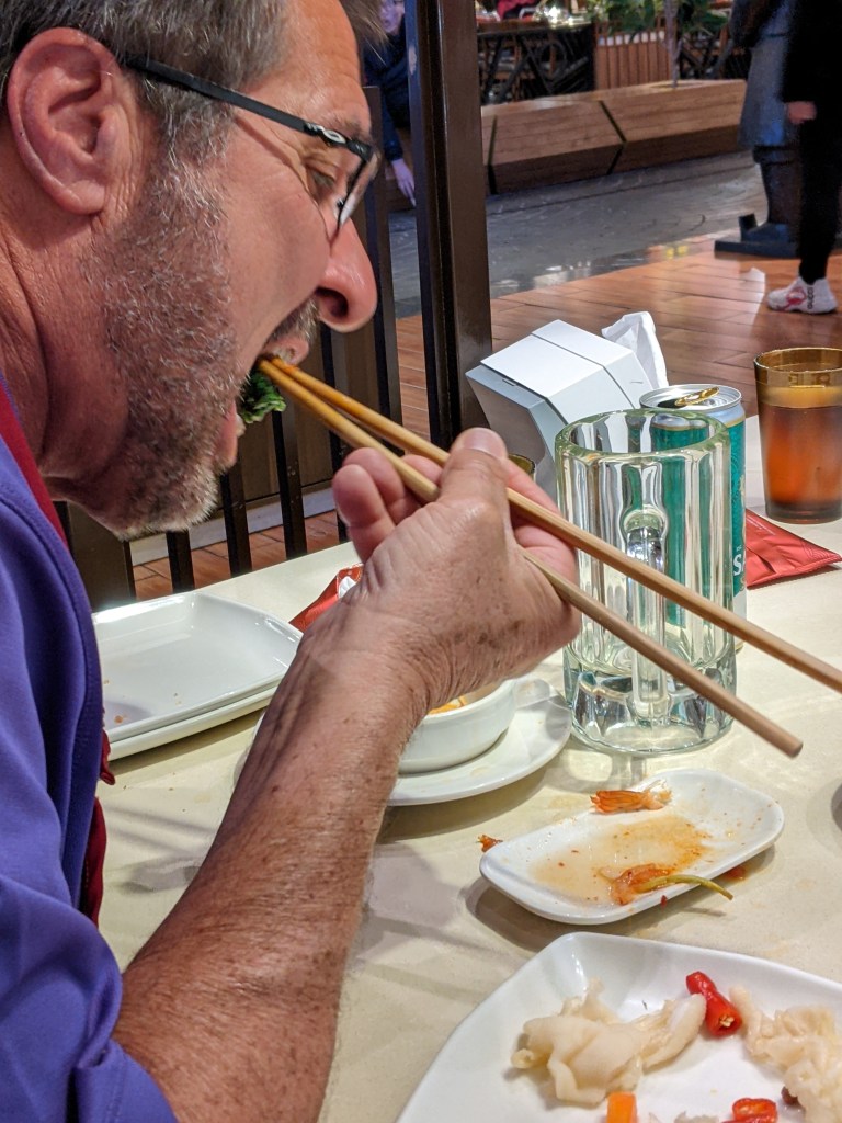 For dinner tonight we were on our own. We went to a Hot Pot restaurant where you cook food at the table. We were quite confused, but one girl spoke English and showed us how to make the sauce. It was a pork or mushroom base with garlic, scallions, soy sauce and ginger. We cooked the meat in a pot with spices, some hot and some mild. The beef and shrimp were really flavorful. We also cooked mushrooms and greens. I’d have eaten just about anything with that sauce.