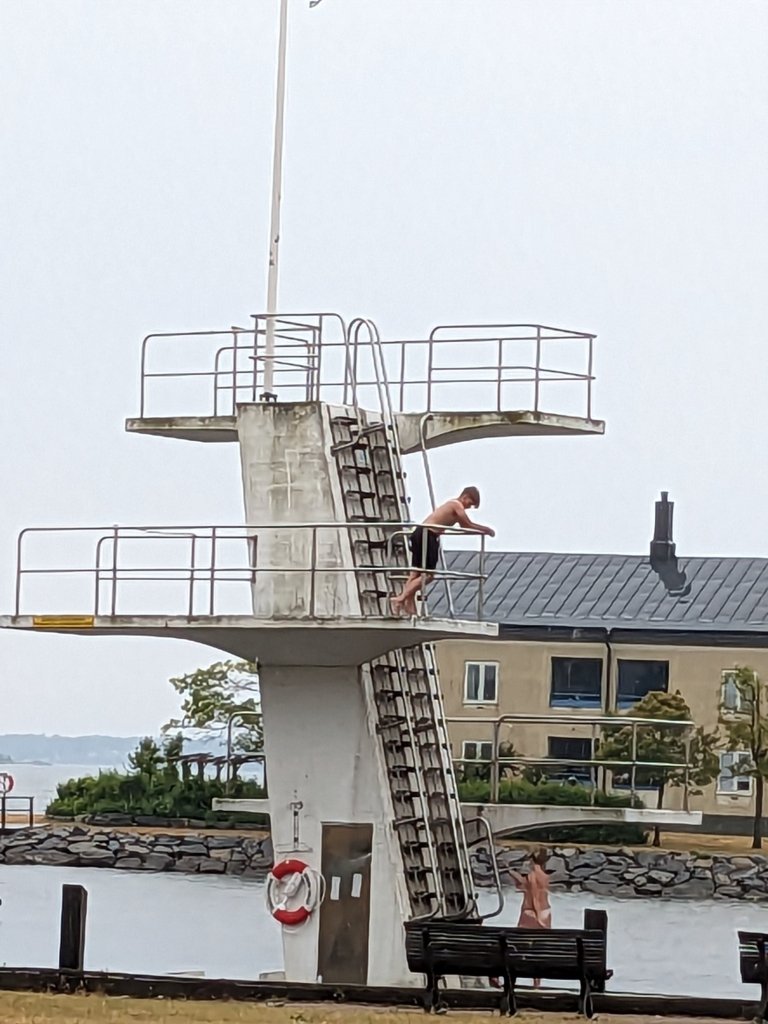 Outside of the museum these crazy Swedes were going to platform dive. We think they chickened out.