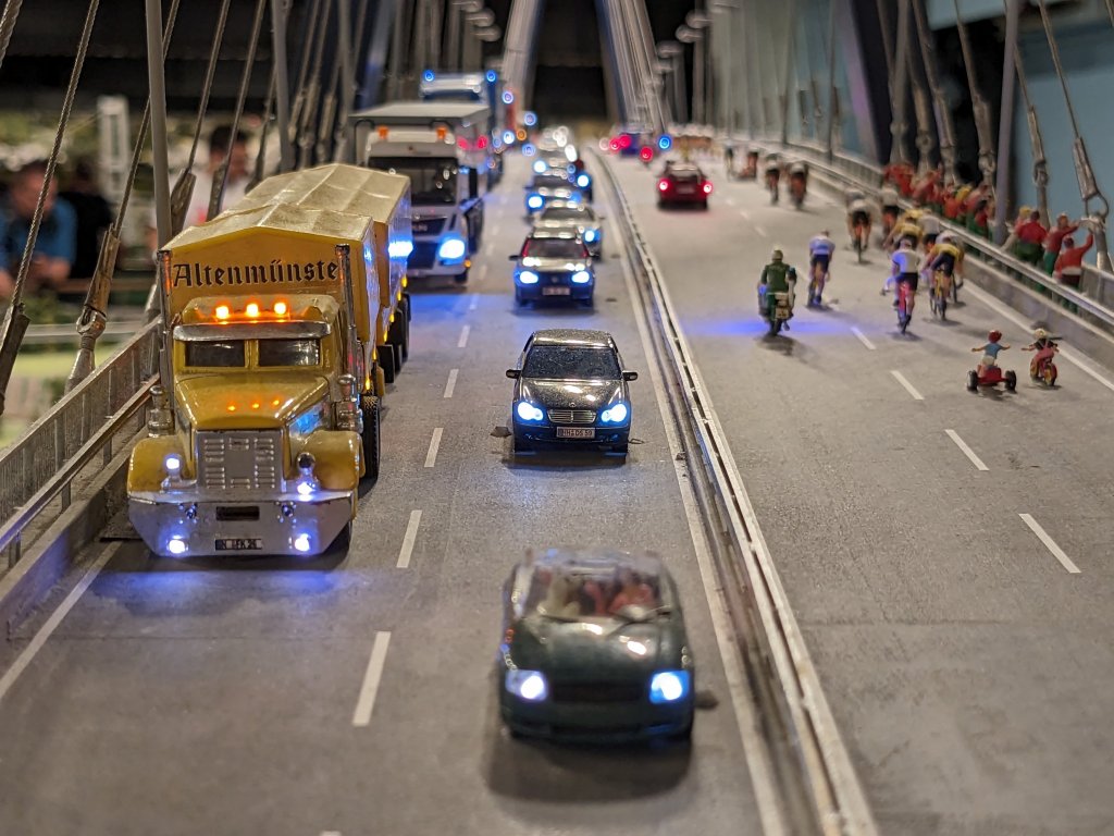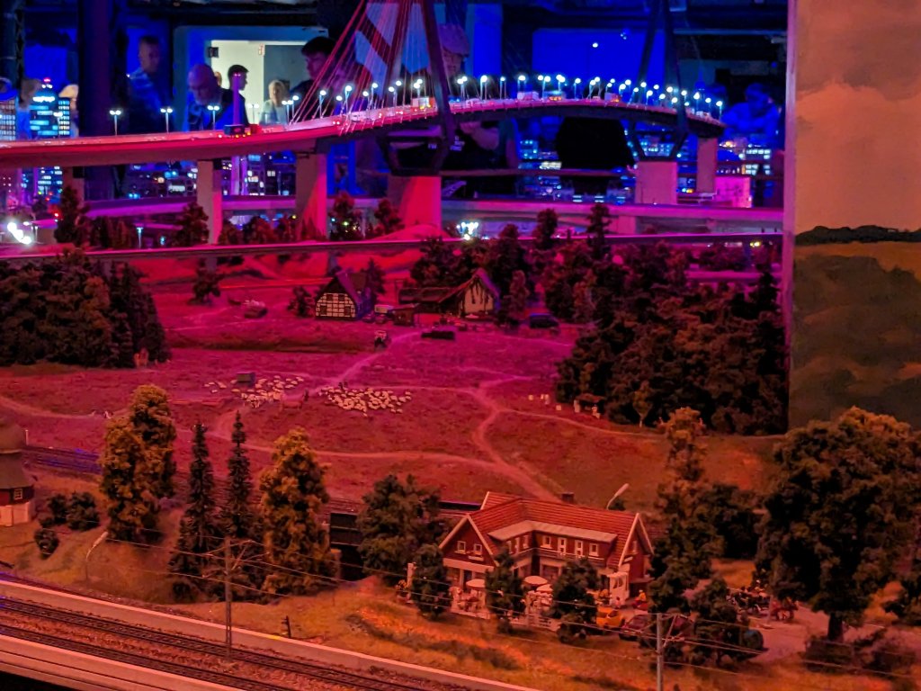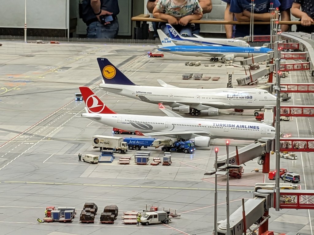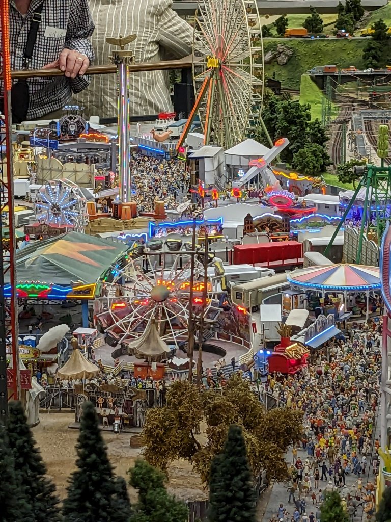 We heard from several Viking cruise travelers that the Miniatur Wunderland trains were something not to miss in Hamburg. They require a reserved time slot and so when we went to get our Hamburg card they were able to reserve a time for us this morning. It was amazing, with over a million man hours and counting to put together. It is arranged by countries. The cars and trucks follow the lanes, stop at signs and change lanes with traffic. At one point a tunnel starts to smoke and all of the emergency vehicles come to the fire. A staggering 9.5 miles of track. The lights dim regularly and the effect of seeing 385,000 LEDs all lit up is so cool. There are over 1,000 trains and 9,200 cars.