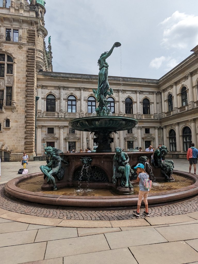 We ate this evening close to the Operettenhaus in the St. Pauli area. The Freidenhaus restaurant had good German food and an eclectic neighborhood. It was party central all around us. We watched a girl park in the middle of the road and the police came to give her a ticket. On the opposite corner was a sex shop. What a people watching spot. After dinner we greatly enjoyed the production of Hamilton in German.