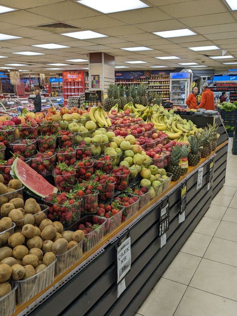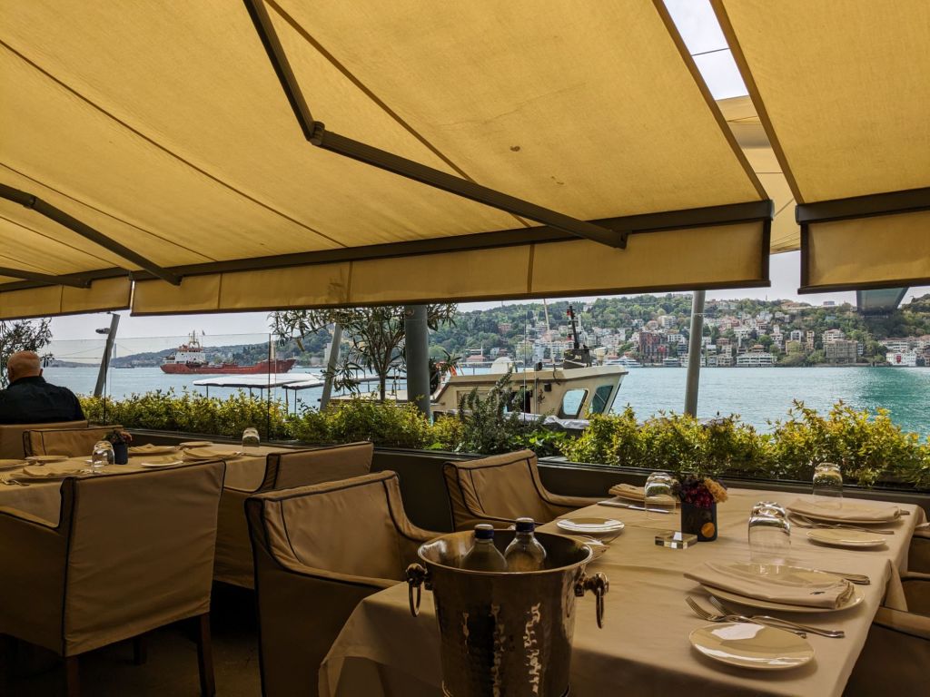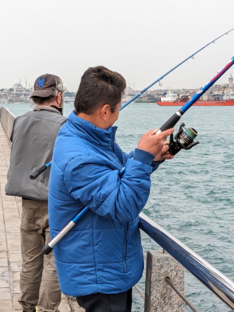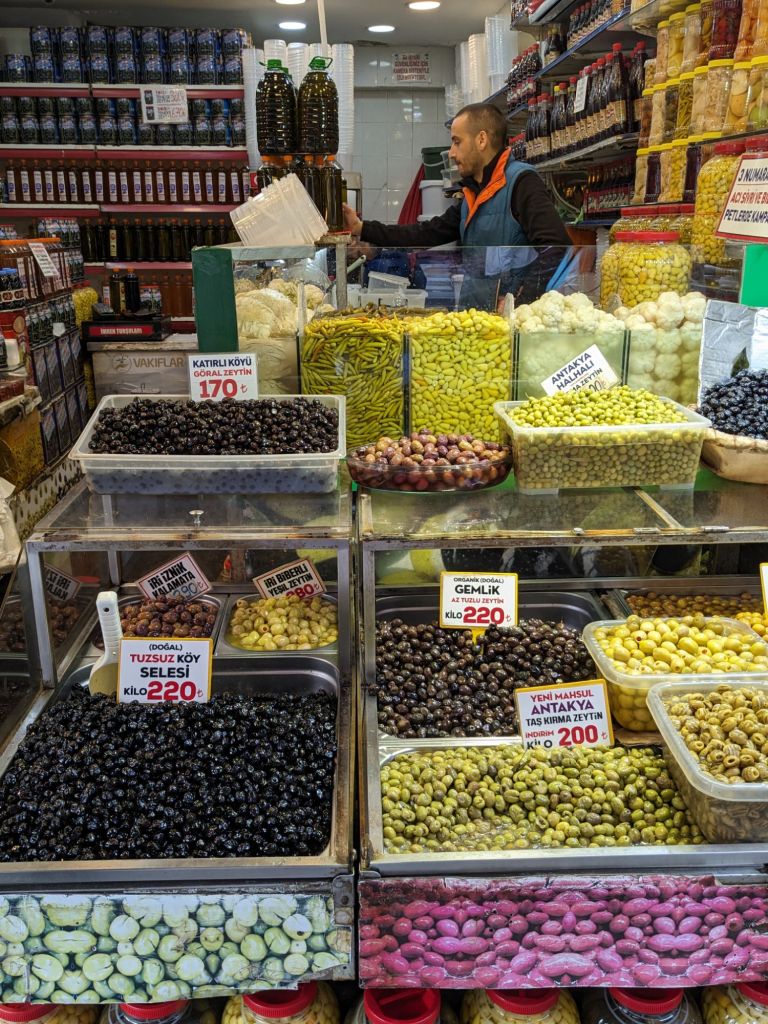 Once on the Asian side we noticed there were very few tourists and fewer people spoke english. We walked along the water and many families were out together celebrating National Sovereignty and Children’s Day. It celebrates the day in 1920 when the parliament met for the first time during Türkey’s war for independence. We found the fish market and wondered along the Main Street. We also went into the Happy Market, a grocery store. The holiday made moving around difficult because of the crowds. Rick Steves recommended a nice seafood restaurant called Lacivert, it was about a 45 minute bus ride from the area where we had first come over on the tram. The buses were busting at the seams, but finally we packed ourselves into #15. After the bus ride, we had to walk for another 10 minutes, but it was well worth the hassle. Our favorite was the Lebanese Salad, with sumac, cherry tomatoes, fried tortillas and radishes. Instead of returning to the European side by tram we took the boat that the restaurant offered to cross the Bosphorus Strait and caught a bus back to our hotel in the New Town area. For the last three days, we have averaged over 16,000 steps each day.