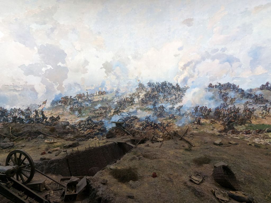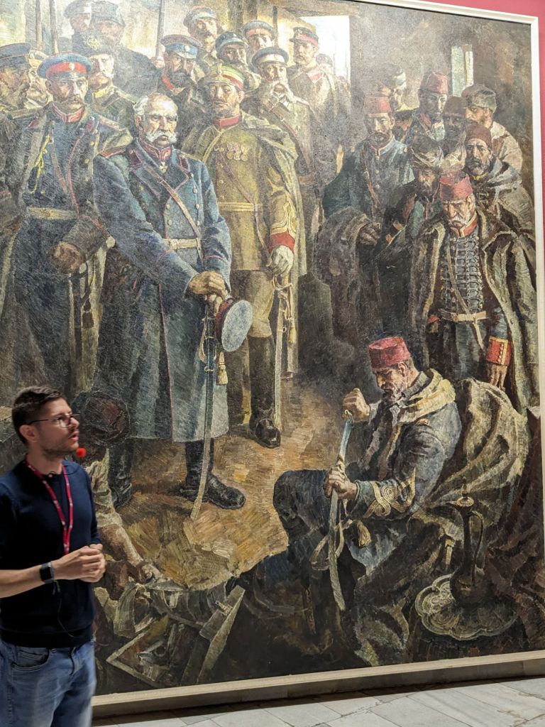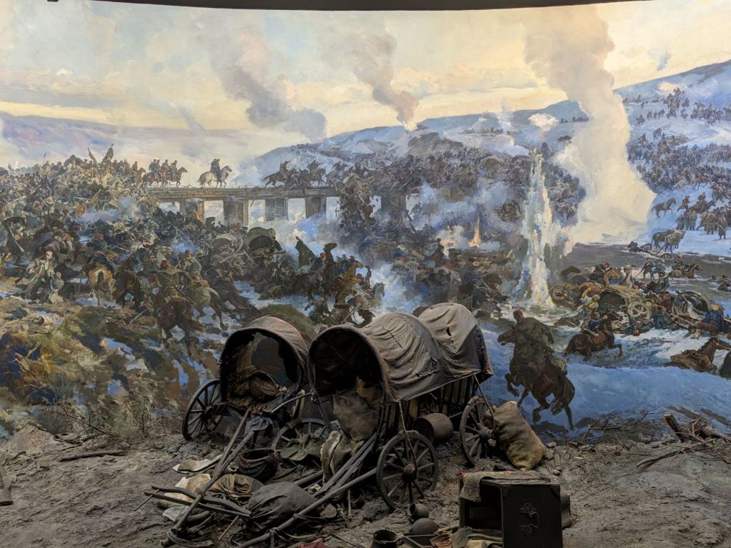 The memorial commemorates the loss of 50,000 soldiers on both sides and the surrender of 43,000 Ottoman. This was one of the first battles of a mechanized army (Gatling guns, repeating rifles) against a manual army (flint locks, bayonets) resulting in the loss of many, many soldiers. One of the very first Gatling guns ever used in battle was used in this battle.