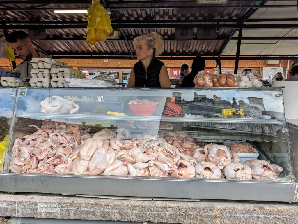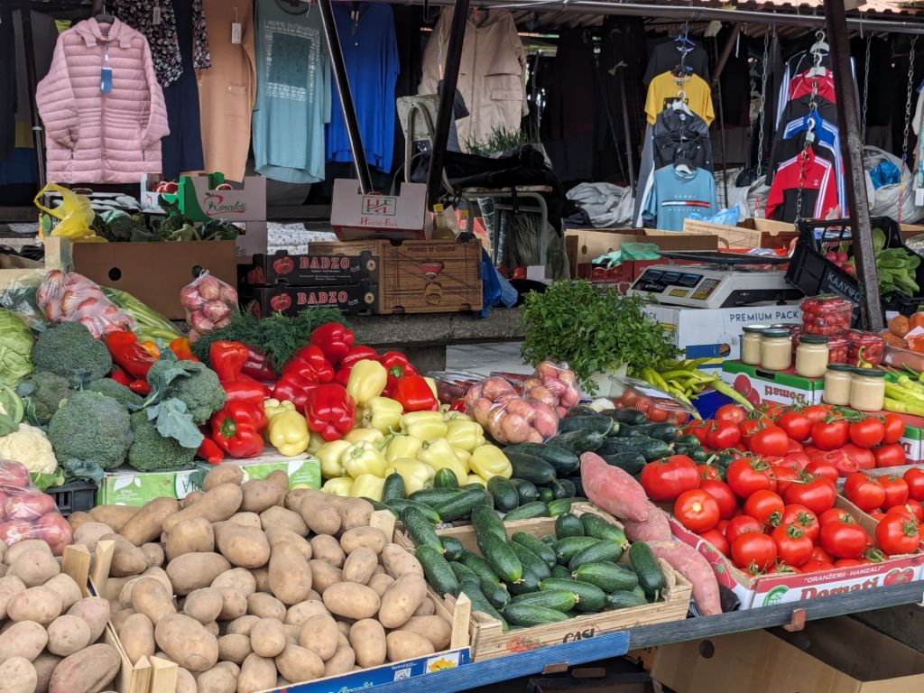 Today, on Saturday there was a colorful market with processed food, fresh vegetables, meats, household supplies and clothes.
