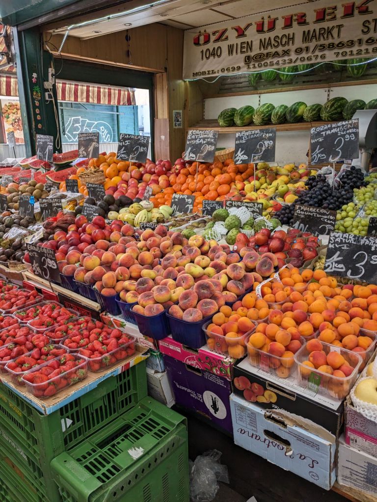 Just a short walk from the U1 Karlsplatz is a huge market. Lots of restaurants, food stalls and clothing. Some things, like the Sissi chocolates were priced higher than in the center Ring. It is an interesting place and if you get there by 9:30 it isn’t very crowded.