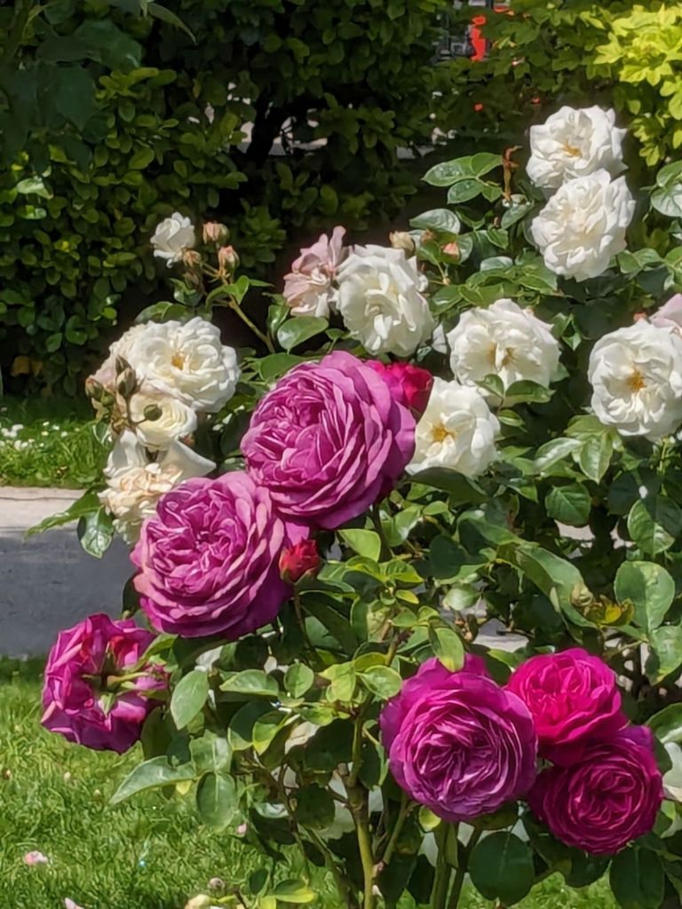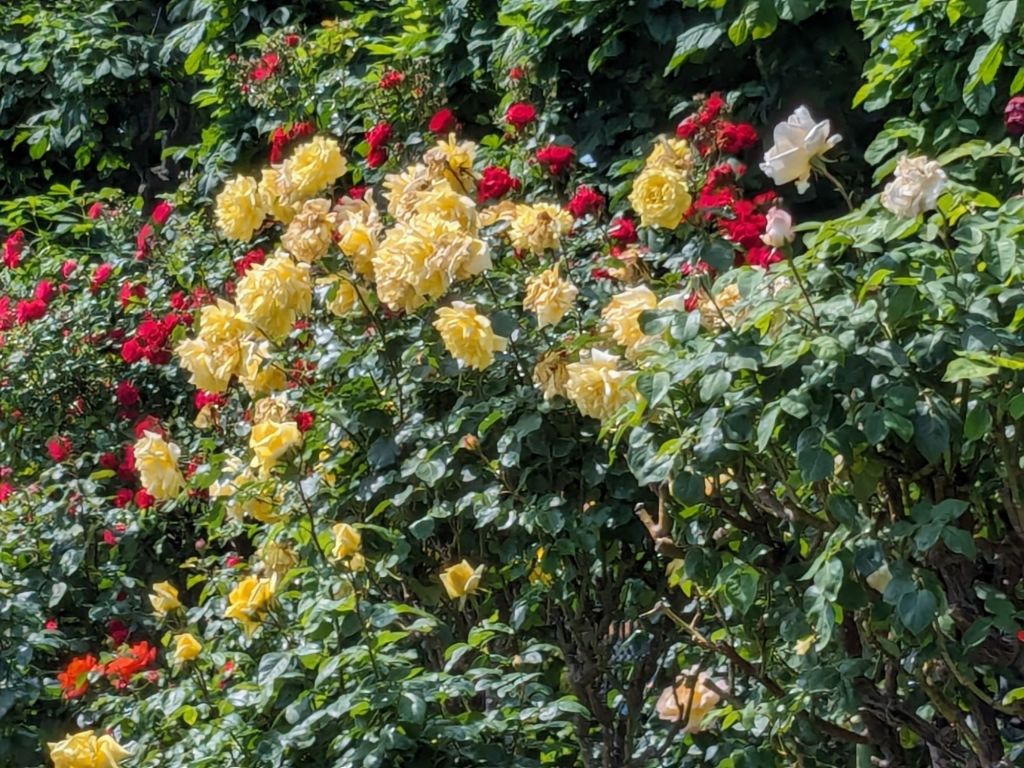 We went looking for an area that we found last time we were here. There were stalls with really good food in a park and a large screen showing a movie. While hunting we found a rose garden. It was amazing.