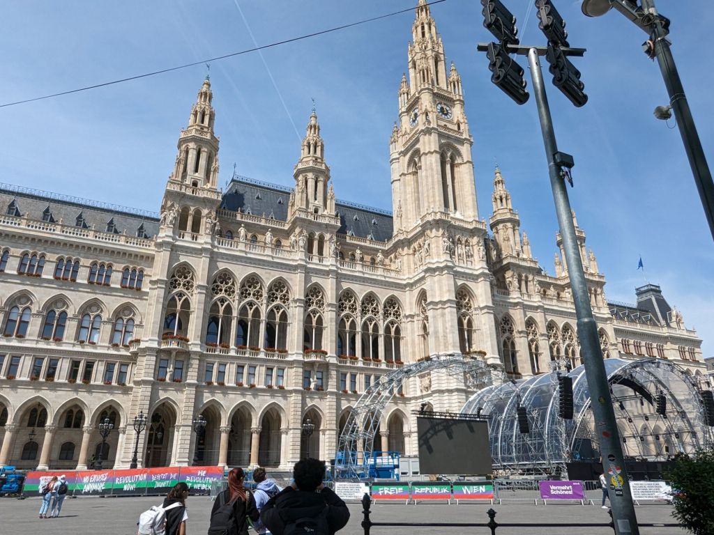 Then we found the park, it had the screens still there to show movies, but also it was preparing for a concert. There were not any food stalls today. We were so disappointed. Kind of silly that we didn’t realize where it was since it was behind the Rathaus or city hall.
