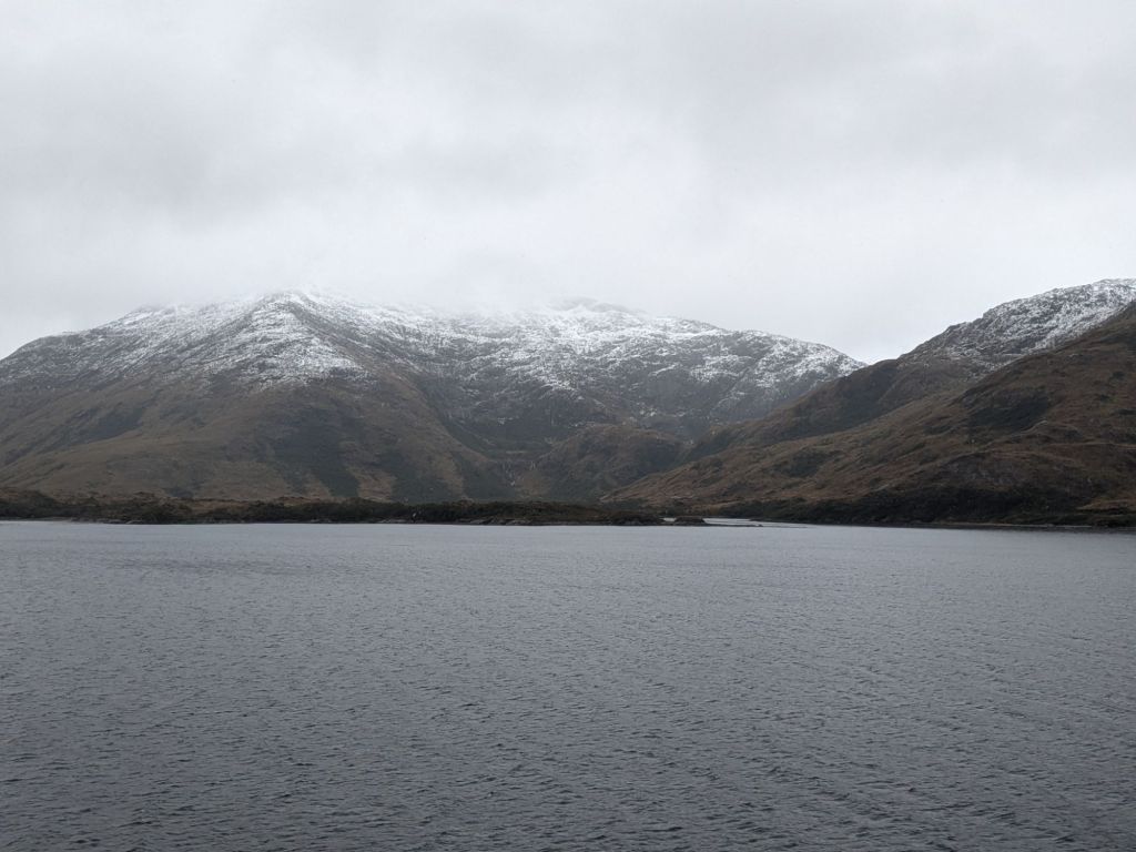 This morning the waters are calm and we have entered the national park called Alberto del Agostini. The Andes mountains that have popped up are snow covered and have waterfalls cutting through every so often. There are no other ships anywhere around us.