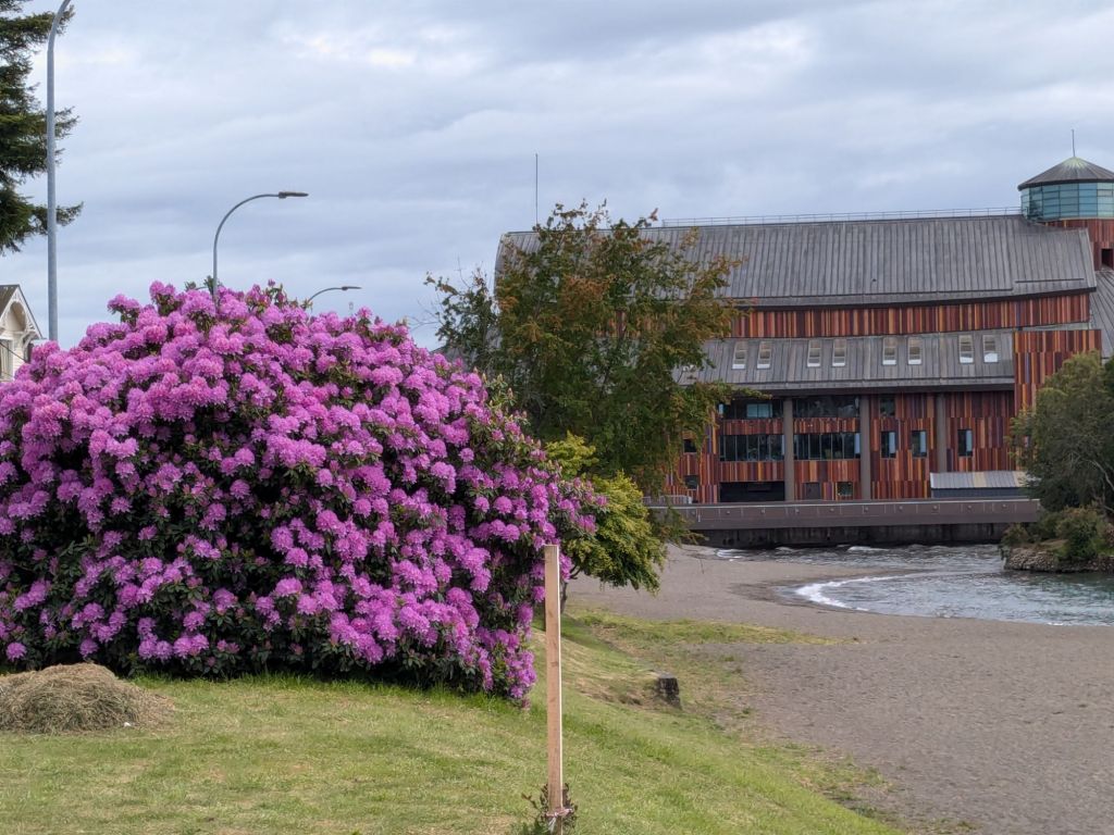This area was settled mainly by Germans in the 19th century. The small town called Frutillar (about 15 minutes from Puerto Montt) has many pretty houses, with German influence, along Lago Llanquihue (largest lake completely in Chile). Most of them have been turned into Bed and Breakfasts. Their spring flowers are blooming, and are so beautiful. The weather is mild and only reaches a low in the upper 40’s in the winter.