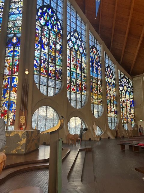 A modern Catholic church, Catholic Church of St Joan of Arc was built in this location which also replaced the former Church of Saint Vincent. The 12th century stained glass windows were incorporated into the design.