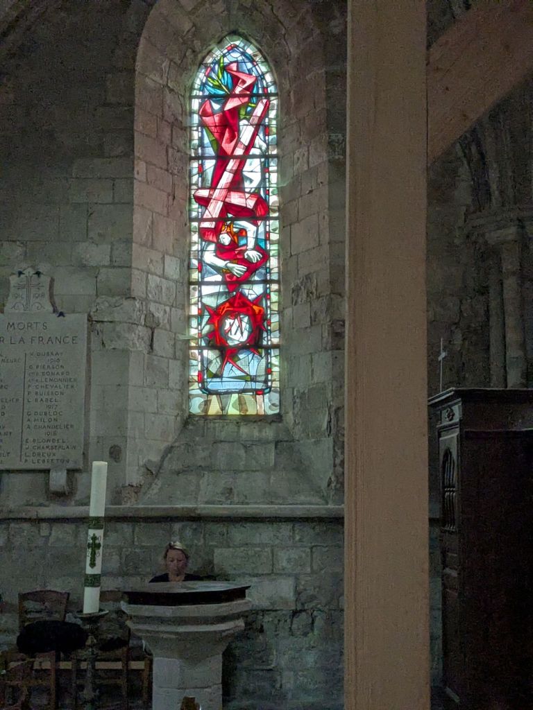 The town has several cute shops with a couple of art galleries. We liked the stained glass in the Catholic church.