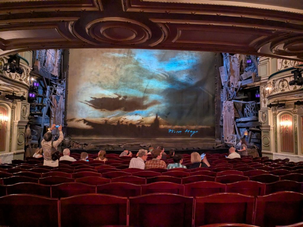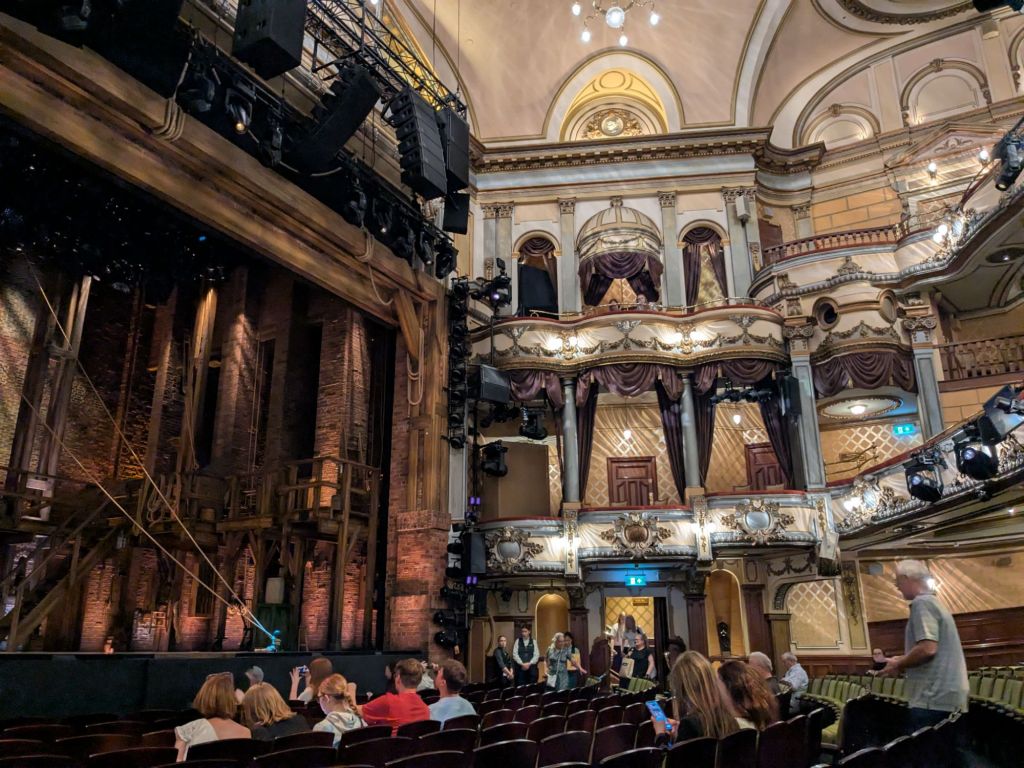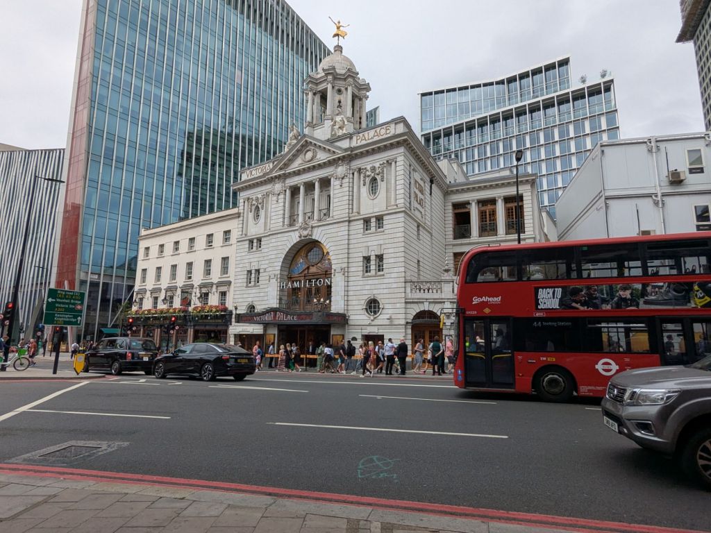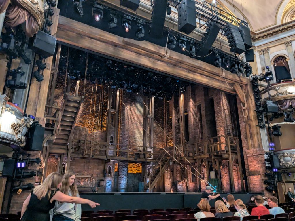 The show Hamilton was in the theater that Les Miserables was in 25 years ago. The show was great, kind of different watching a show about the British losing to the U.S., in a room with mostly Brits.