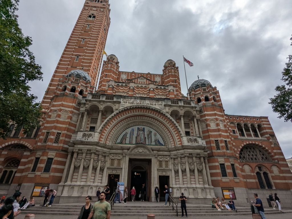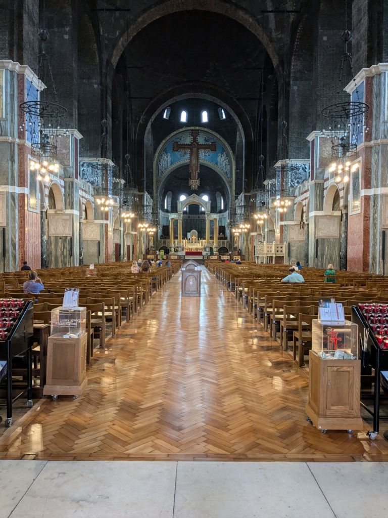 This cathedral we just happened upon and had never visited before. It is really nice and is the largest catholic cathedral in England and Wales. It was built from 1895 – 1903, in the Byzantine style. The mosaics are so pretty and colorful, the windows are not the focus, as in most cathedrals.