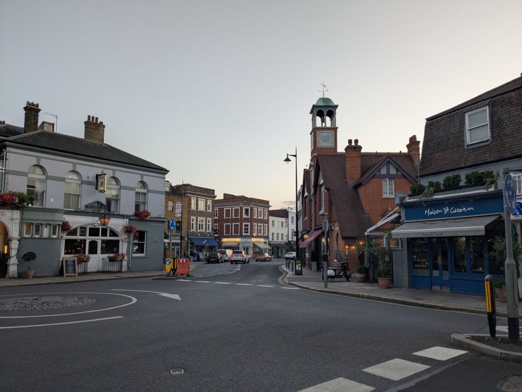The show ended about 5:30 and so with a bit of daylight left we jumped on a train and went to Wimbledon. We walked past the courts and then to the town of Wimbledon. Quaint place with beautiful houses and friendly folks.